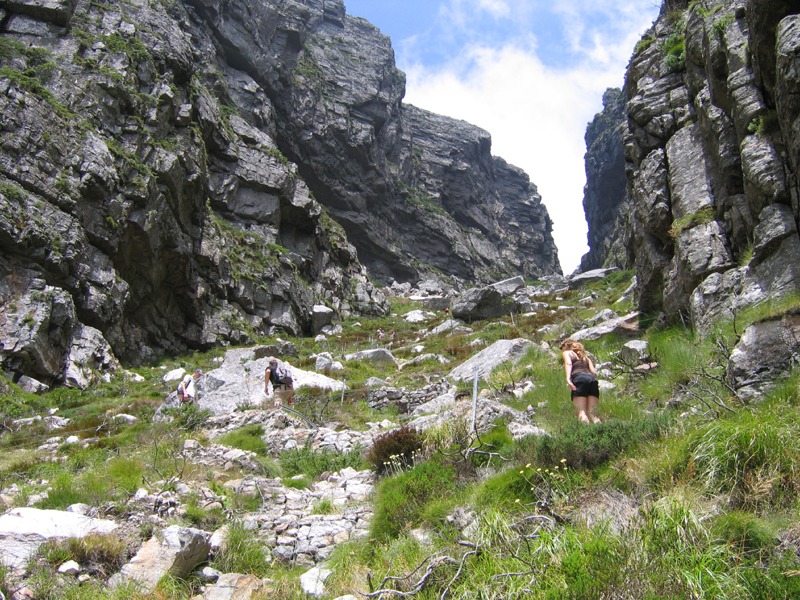 Am Samstag dann wollten wir die Schuhe auch direkt einweihen und so machten wir uns auf, den Tafelberg zu "bezwingen". Gut ausgerüstet ging es gegen 11.00 Uhr los. Die Talstation der Cableway liegt nur gute fünf Autominuten von unserer Wohnung entfernt. Ca. 1,5 km von dort nochmals entfernt beginnt der "Plattenklip Gorge", der empfohlene - wenn auch alles andere als einfache - Weg auf den Tafelberg.