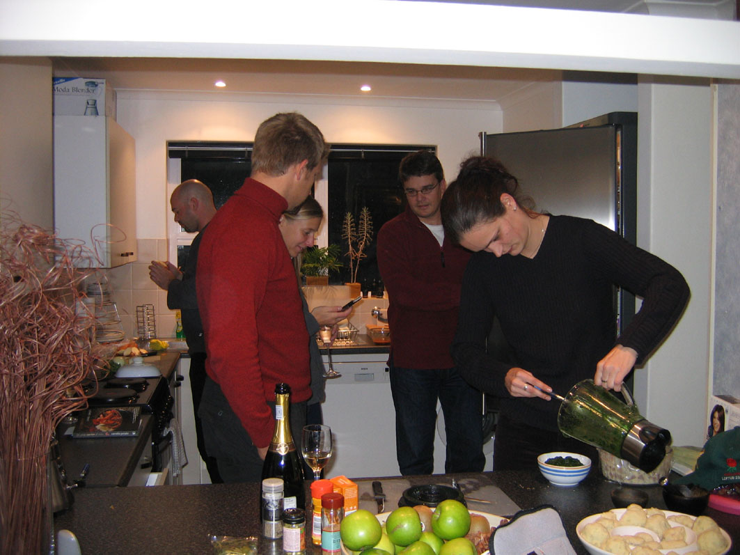 Samstag Abend haben wir beschloßen, uns mit einem heißen Curry innerlich zu wärmen. Wir fuhren zu Anthony und Katarina und haben dort ein Hühnchen- und ein Seafoodcurry gekocht. Außer den Beiden waren noch Doreen und Matthias und drei Freunde von Anthony da. Nach dem sehr leckerem Essen gab es noch einen sehr deutschen Nachtisch: Pflaumen im Schlafrock. Die englische Übersetzung: plums in a pyjama ;-) fanden wir sehr amüsant.