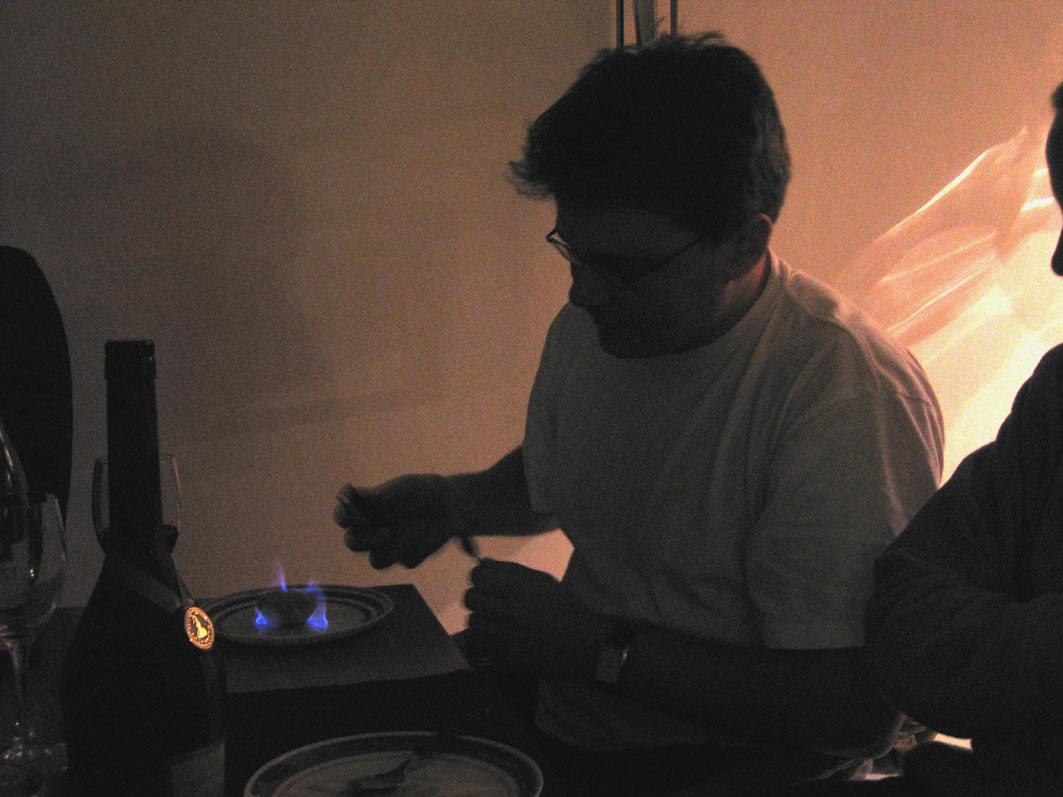 Unsere südafrikanischen Freunde beschlossen dass das Dessert noch aufgemöbelt werden musste. Ruckzuck kam ein Schuß Cherry darüber und wurde kurzer Hand angezündet.
