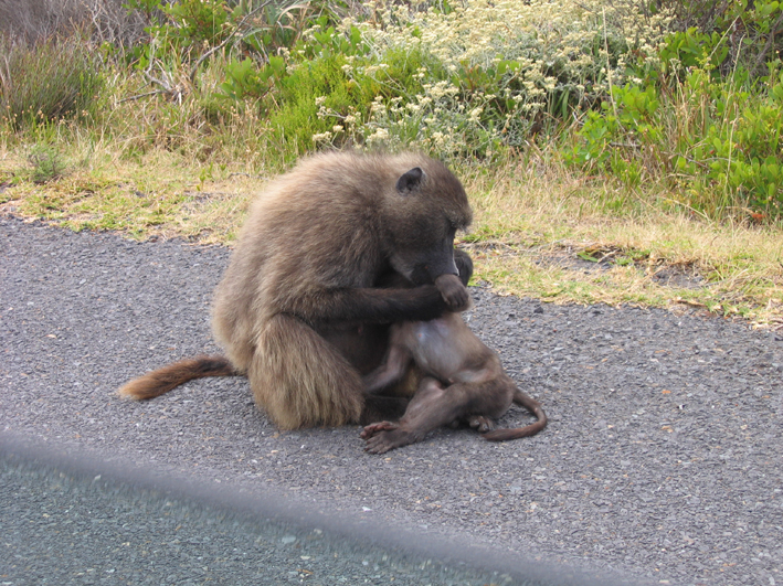 Ich war mittlerweile schon einige Male am Kap, aber noch nie ohne Wind. Gestern hat es fast gar nicht gewindet und nur ganz vorne am Cape Point blies der Wind wie gewohnt. Nach einem schönen Aufstieg und Spaziergang gab es was leckeres zu essen, bevor wir noch zum "Cape of Good Hope" gefahren sind. Auf dem Weg haben wir dann noch einige Baboons gesehen, darunter auch eine Mutter, die ihrem Kleinen das Fell gelaust hat. Süüüß!