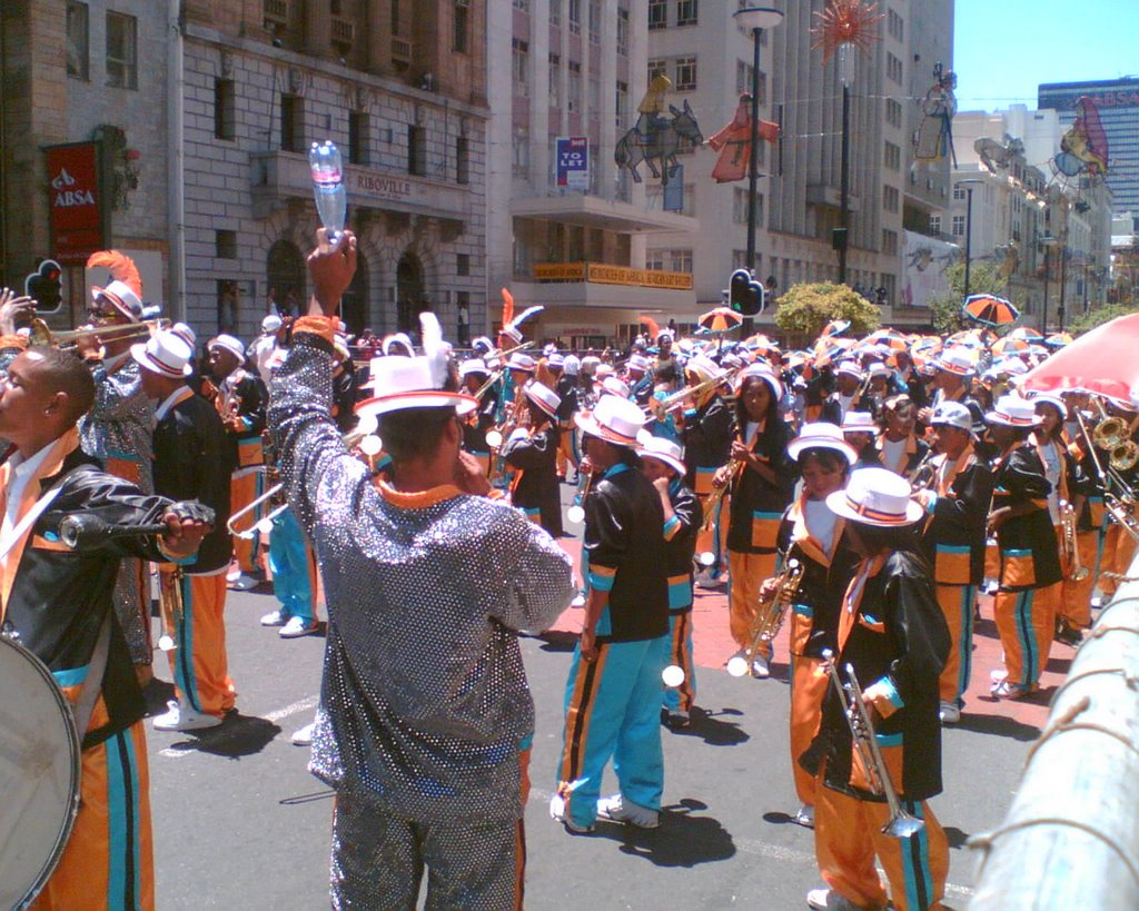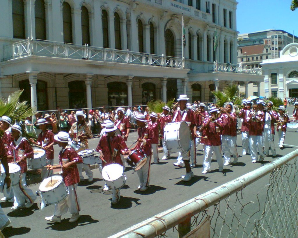 In der Stadt waren an diesem Tag ganze Strassenzuege abgesperrt fuer die Parade zum Coon Carneval (Afrikaans: Kaapse Klopse). Zu der Zeit, in der Sklaverei noch an der Tagesordnung war, mussten die Sklaven am ersten Januar arbeiten. Daher feierten diese "ihr Neujahr" am zweiten Januar. Diese Tradition wird von der Coloureds, der Bevölkerungsgruppe deren Hautfarbe weder weiss noch schwarz ist, und die offiziell politisch korrekt so genannt werden, fortgeführt. Die Festivitäten gehen bis Mitte Januar und neben den Paraden durch die Stadt gibt es auch eine Aussellung.