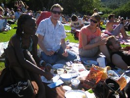 losgefahren sind hatten wir sehr dichten Nebel und es war auch etwas kühl. Mit Pullover bepackt haben wir uns auf den Weg nach Kirstenbosch gemacht und siehe da: das Wetter war herrlich. Eine halbe Stunde Autofahrt und 10 Grad C Unterschied. Wir hatten einen tollen Nachmittag mit Picknick und guter Musik.